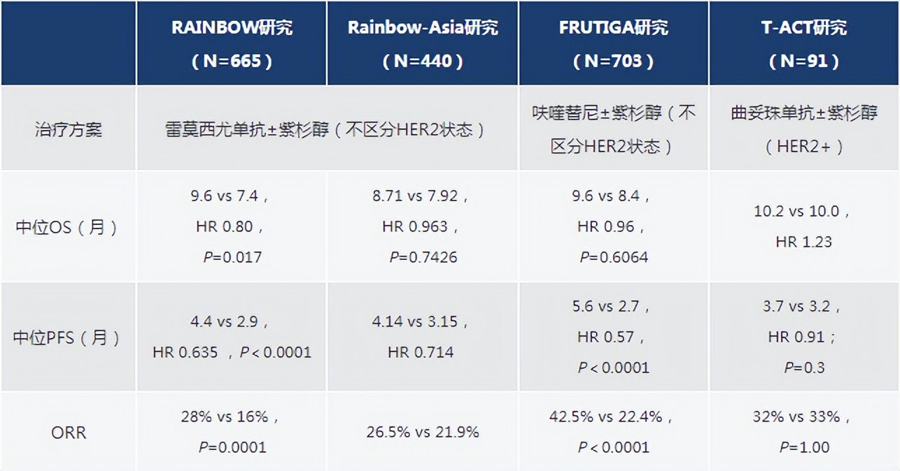 表2.已报道晚期胃癌二线治疗III期研究(非头对头比较,请谨慎解读)[2-5]
