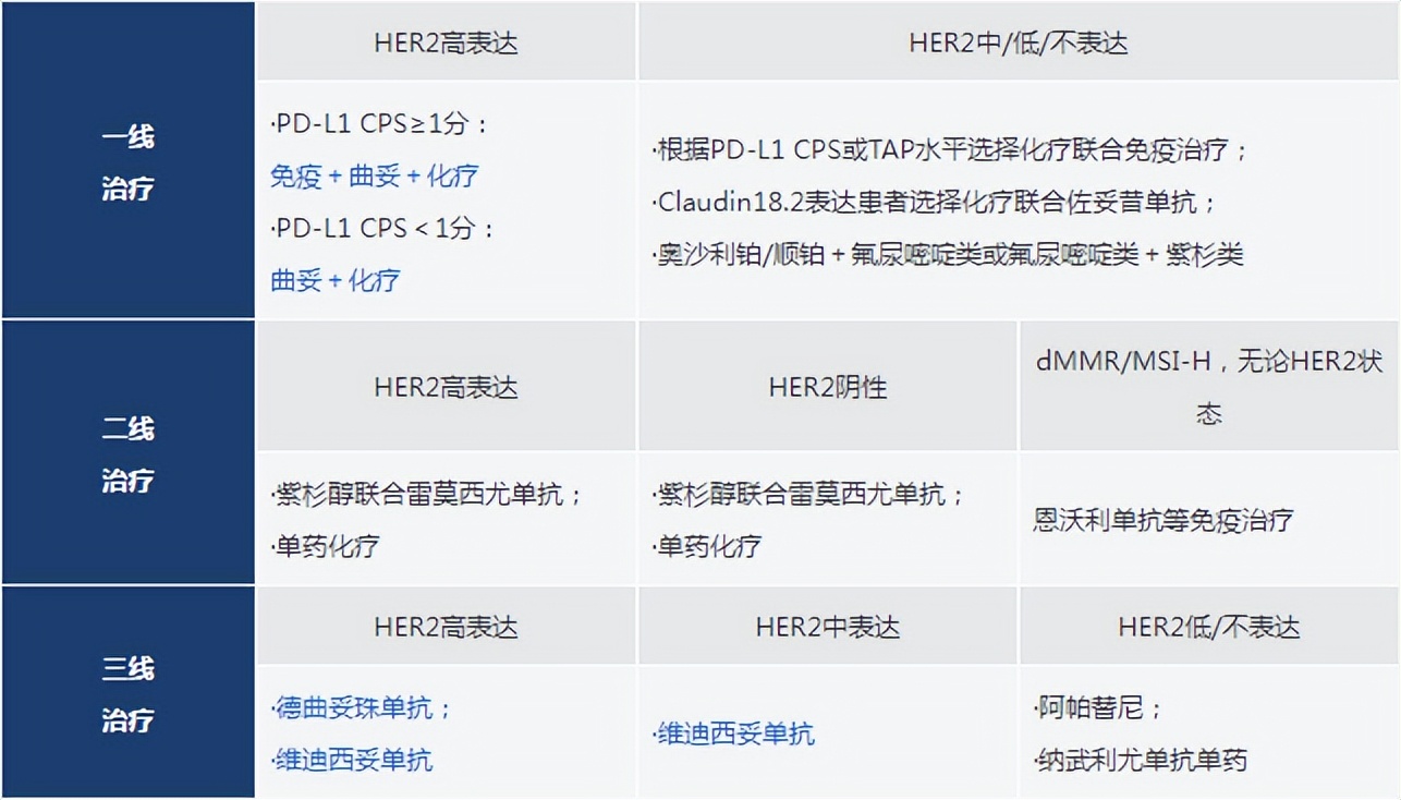 表1.2025版CSCO胃癌晚期治疗I级推荐[1]