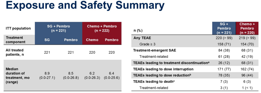 此外,我们还需关注内脏、脑转移等远处转移病灶的缓解情况。ASCENT-04研究均纳入了这些患者,但目前尚未公布相关亚组数据。从既往其他研究及SG药物特征来看,其载荷SN-38不仅活性高,而且可能也具备通过血脑屏障的能力。因此,在内脏或脑转移疾病控制方面的疗效应该也不会差。