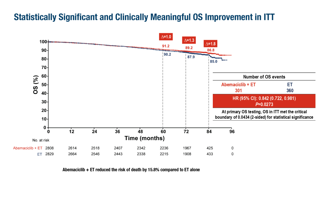 monarchE研究:阿贝西利联合内分泌治疗(ET)治疗HR+/HER2-高风险早期乳腺癌(EBC)的辅助治疗的主要总生存期(OS)结果
