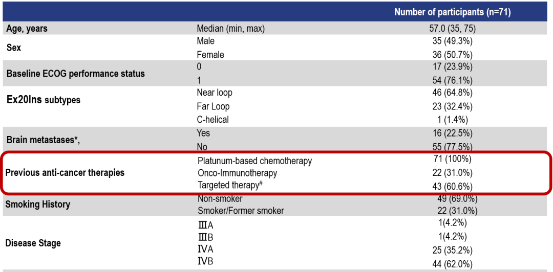 柳影教授:我们知道,EGFR突变是NSCLC中最常见的驱动基因;我国NSCLC患者中的EGFR突变比例约为50%[7]。其中,ex20ins突变是EGFR的第三大突变亚型[6]。这类患者异质性强,预后较差[7]:EGFR ex20ins患者从目前的传统化疗、第一代、第二代、其他第三代EGFR酪氨酸激酶抑制剂(TKI)和免疫治疗中的获益有限[2]。目前,EGFR ex20ins患者的治疗仍存在非常大的未被满足的需求[7],包括ORR、PFS、安全性等等不尽如人意,亟需探索新型治疗策略。