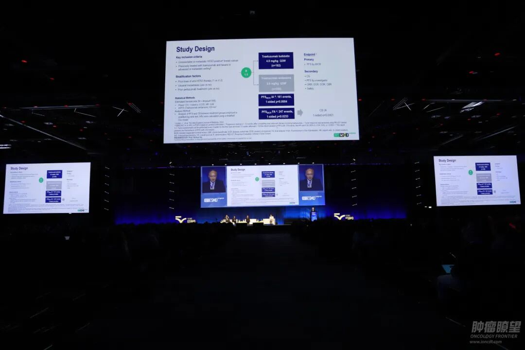 《肿瘤瞭望》:胡教授您好,非常感谢您带来这项备受瞩目的Ⅲ期研究。作为首个头对头对比博度曲妥珠单抗与恩美曲妥珠单抗(T-DM1)的研究,其预设期中分析已显示博度曲妥珠单抗在PFS上有显著改善。能否请您具体解读一下本次ESMO公布的完整研究数据?