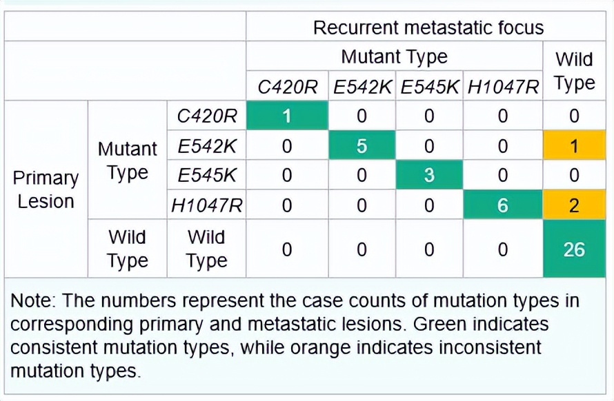 然而,当前缺乏HR+/HER2-乳腺癌患者的PIK3CA基因突变在原发灶与转移灶之间的一致性的证据。较少有研究系统评估了初治肿瘤与转移瘤中PIK3CA突变的异同及一致性,导致临床在用药决策上尚有不确定性。