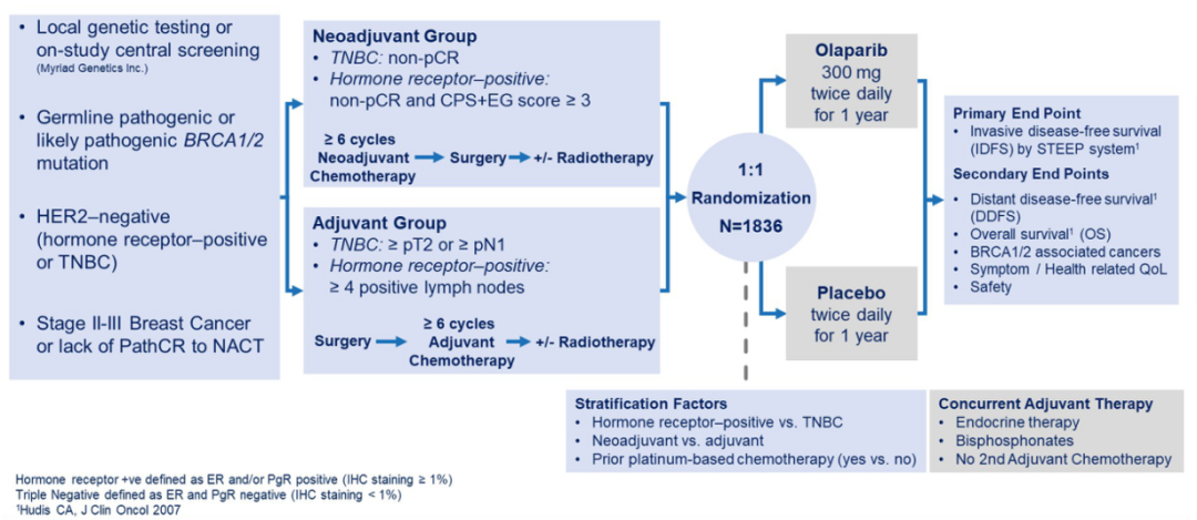 OlympiA研究是今年ASCO大会一个非常值得关注的重磅研究。因为该研究会对“高危”HER2-乳腺癌辅助强化格局产生新的冲击。众所周知,HER2-乳腺癌大致可以分类为:HR+HER2-型与三阴性乳腺癌两种类型。而“高危”的HER2-乳腺癌又根据临床特征分为两种类型:1)直接手术,术后被评估为“高危”;2)新辅助后non-pCR患者。因此解读OlympiA研究起码要从这2种亚型2个维度来解读。本文仅仅就OlympiA研究对三阴乳腺癌辅助强化格局的影响发表一下个人浅见,抛砖引玉。