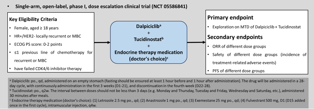 题目:达尔西利联合西达本胺用于CDK4/6抑制剂治疗失败后的HR+/HER2-晚期乳腺癌的Ⅰb期研究