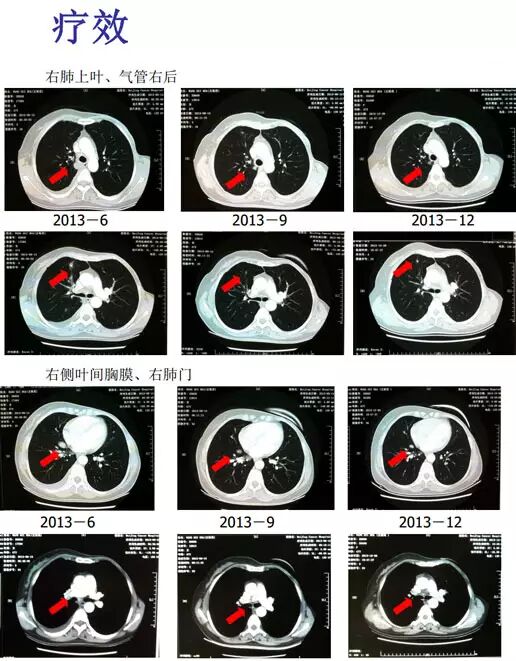 总结:①诊断一元论:有乳腺癌病史的患者出现恶性肺部病变,不能仅考虑为肺癌,乳腺癌合并其他肿瘤的可能性很小(<10%),乳腺癌肺转移的可能性更大;②内分泌治疗的重要性和有效性。