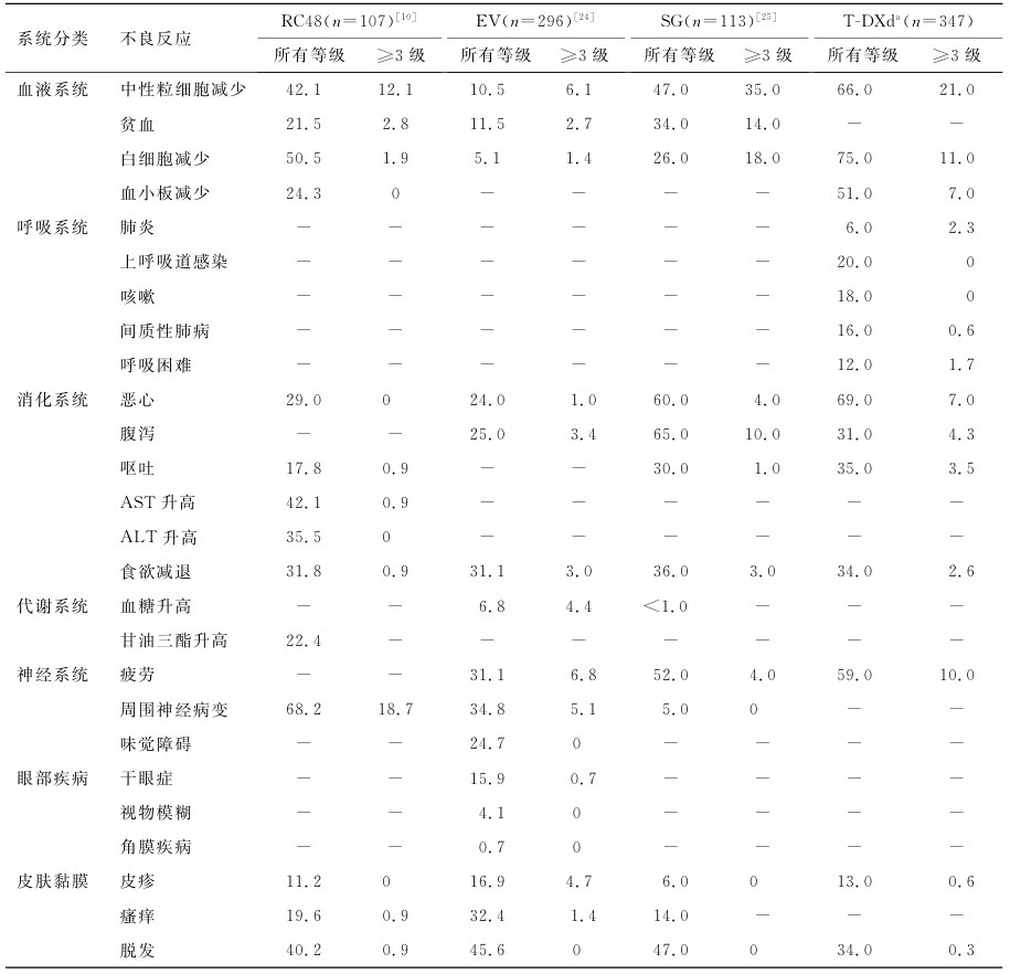表4 ADC联合免疫检查点抑制剂的不良反应种类及发生率