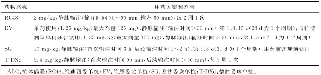 根据适应证获批情况、药物可及性及国内外实际临床应用场景,在患者知情并充分沟通的情况下接受ADC药物治疗。在用药前和用药期间应全面评估患者身体情况,特别是ADC药物需要关注的不良反应,最大限度保障治疗的安全性。使用ADC药物时,应严格按照推荐用药方案和剂量给药。整个治疗过程中应按照RECIST 1.1标准每6~12周进行疗效评估。
