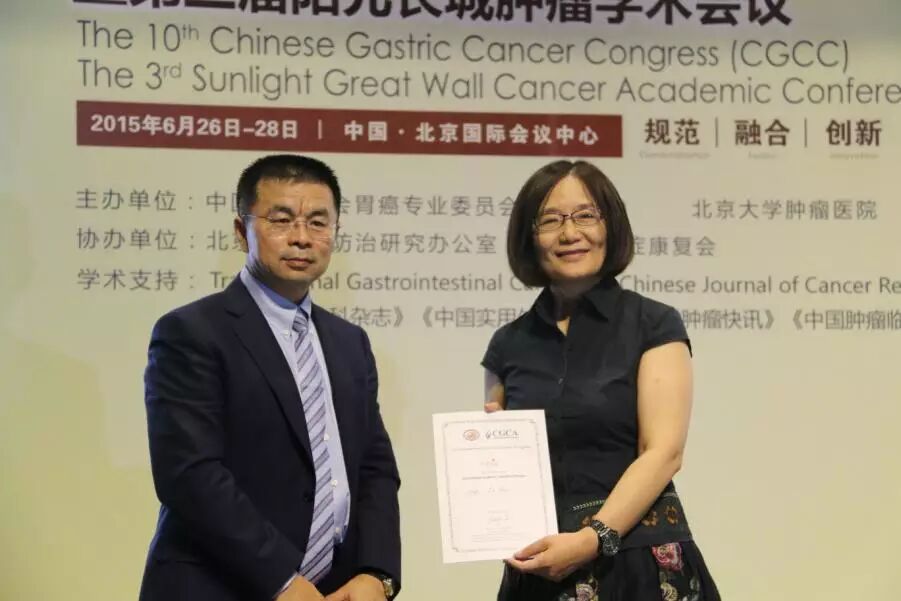 2015年6月28日上午11点,第十届全国胃癌学术会议暨第三届阳光长城肿瘤学术会议在北京国际会议中心一层第三会议室举行闭幕、颁奖及IGCC 2017启动仪式,由北京大学肿瘤医院的沈琳教授和武爱文教授担任主持。