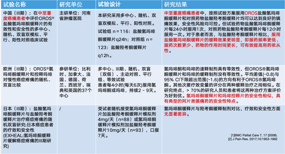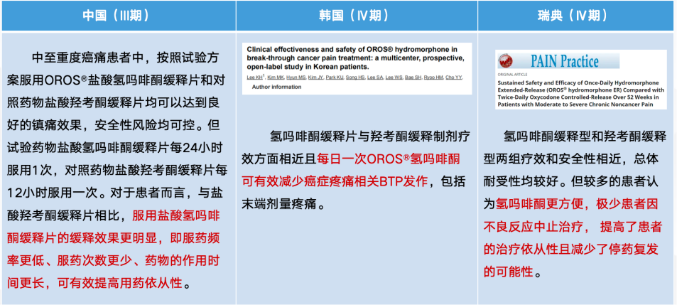 表1.国内外氢吗啡酮缓释片III期临床试验对比总结