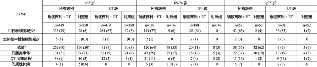 表2瑞波西利+ET在不同年龄亚组中特别关注的安全性数据[11]