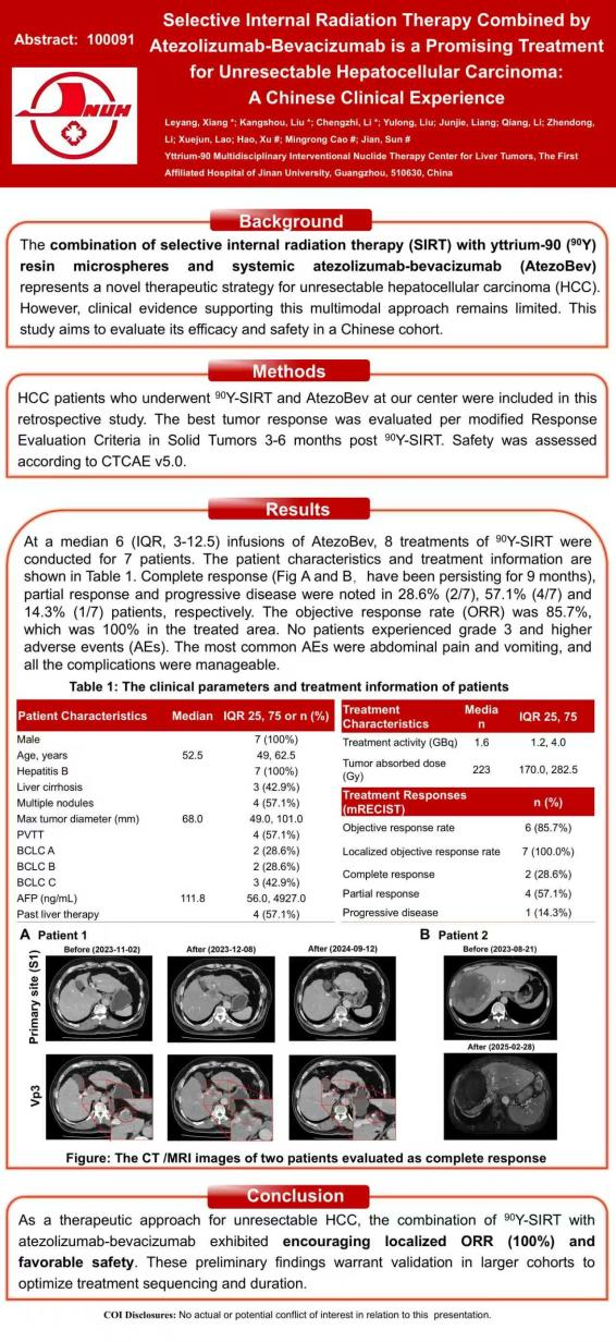 [3].Mingrong Cao,et al.Selective Internal Radiation Therapy Combined by Atezolizumab-Bevacizumab is a Promising Treatment for Unresectable Hepatocellular Carcinoma:A Chinese Clinical Experience.2025 APPLE Abstract#100091