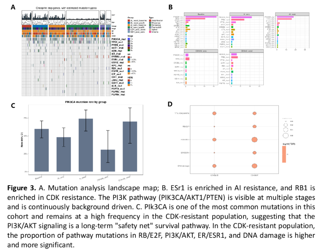 这提示我们,在适应性治疗期间持续存在或新出现的PIK3CA及TP53突变,是预测序贯治疗耐药的重要分子标志物。对于此类患者,未来策略可能需要前移靶向干预时机,例如更早地联合PI3K抑制剂,以攻破这一耐药防线。