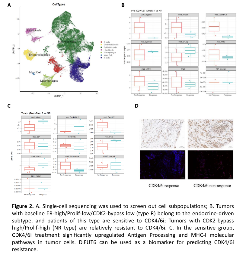 对于初始对AI治疗无反应的患者,加用CDK4/6i可显著降低Ki-67水平,表明这些患者可能从基于CDK4/6i的强化治疗中获益。恶性上皮C2细胞簇和FUT6被确定为与CDK4/6i耐药性相关的潜在治疗靶点。此外,适应性治疗期间持续存在或新出现的PIK3CA和TP53突变可作为序贯AI和CDK4/6i治疗耐药的分子标志物。
