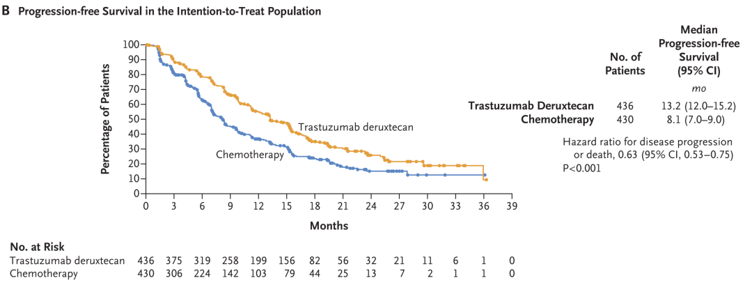 在年初的1月27日,美国食品药品监督管理局(FDA)批准T-DXd在HR+/HER2超低表达(IHC 0,存在细胞核膜染色)晚期乳腺癌的应用。这一国际适应症的扩展主要基于III期DESTINY-Breast06研究。该研究纳入了866例转移阶段未接受过化疗、转移阶段接受过≥1线内分泌±靶向治疗失败的HR+/HER2低表达或超低表达乳腺癌患者,并取得了PFS阳性结果。