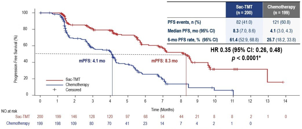 [14]Man Li,Ying Fan,Huihui Li,et al.LBA23-Sacituzumab tirumotecan(sac-TMT)vs investigator’s choice of chemotherapy(ICC)in previously treated locally advanced or metastatic hormone receptor-positive,HER2-negative(HR+/HER2-)breast cancer(BC):Results from the randomized,multi-center phase III OptiTROP-Breast02 study.2025 ESMO LBA23.