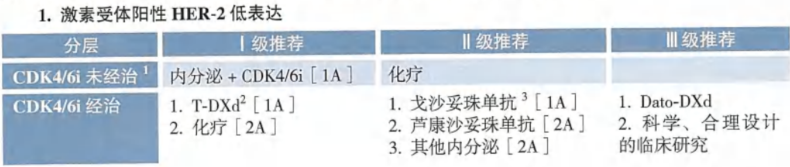 《CSCO BC指南》对HR+/HER2低表达晚期乳腺癌解救治疗推荐方案