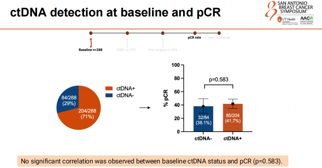 研究结论:这些发现表明,在接受新辅助HER2靶向治疗的HER2+EBC患者中,ctDNA清除与pCR之间存在显著相关性。此外,基线可检测到ctDNA与较差的3年结局相关。需要进一步的前瞻性研究来证实这些结果。