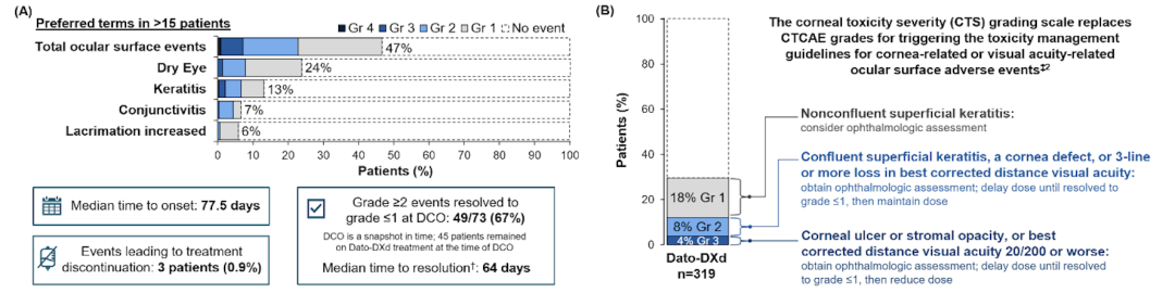 - Dato-DXd组评估频率为基线时;治疗期间每3个周期一次;出现任何眼部症状且有临床指征时;治疗结束时。