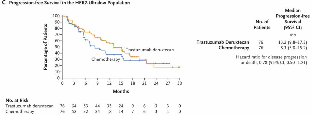 图3.DESTINY-Breast06研究HER2超低表达亚组PFS数据