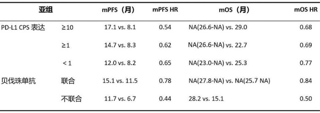 针对PD-L1 CPS<1的阴性人群,PFS和OS的HR分别为0.65和0.77,成功为该类传统免疫治疗获益不明的人群点亮了希望。