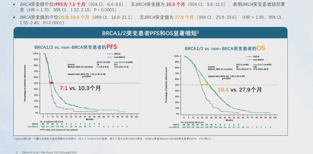 在精准治疗的框架下,识别获益人群是提升疗效的关键。前瞻性CAPTURE研究揭示,携带BRCA基因突变的患者预后显著差于未突变人群。数据显示,BRCA突变患者的中位PFS仅为7.1个月,显著低于未突变者的10.3个月;中位OS也仅为19.4个月,远低于未突变者的27.9个月。这一显著的生存差异提示临床,必须对这部分高危人群进行早期识别与干预。