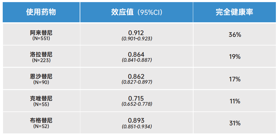 使用不同ALK-TKI的我国ALK阳性晚期NSCLC患者完全健康率