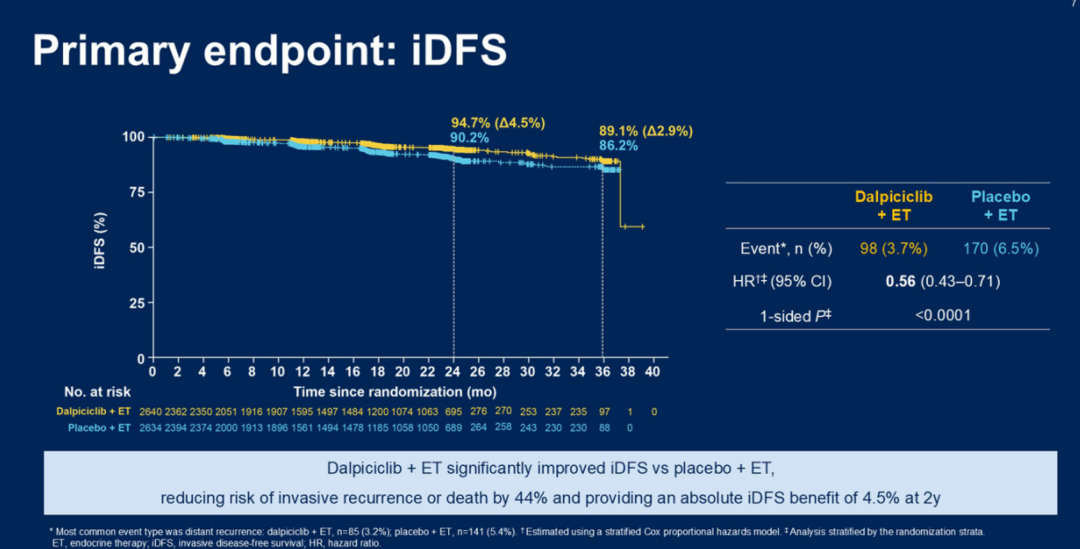 与此同时,国产CDK4/6抑制剂达尔西利也在辅助治疗领域取得重要突破。由复旦大学附属肿瘤医院邵志敏教授与天津医科大学肿瘤医院郝继辉教授共同牵头开展的DAWNA-A研究,是目前国内最大病例数的临床研究,共纳入5274例患者,其中我院贡献了接近500例患者。近期发表的DAWNA-A研究结果显示,在术后辅助治疗基础上联合达尔西利,可显著改善患者的IDFS。随着患者随访时间的延长,其OS数据也值得期待。非常期待该药物在我国上市并增加适应症来惠及更多患者。