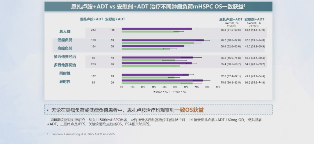 一致性获益:无论在高瘤负荷还是低瘤负荷患者中,恩扎卢胺均表现出明显且一致的疗效。