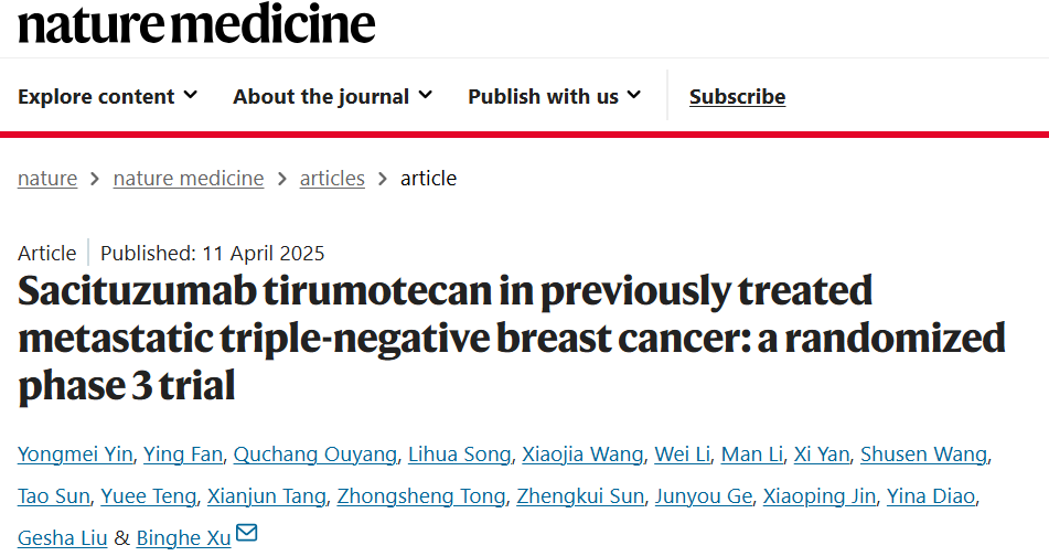 [2]Yin,Y.,Fan,Y.,Ouyang,Q.et al.Sacituzumab tirumotecan in previously treated metastatic triple-negative breast cancer:a randomized phase 3 trial.Nat Med(2025).https://doi.org/10.1038/s41591-025-03630-w