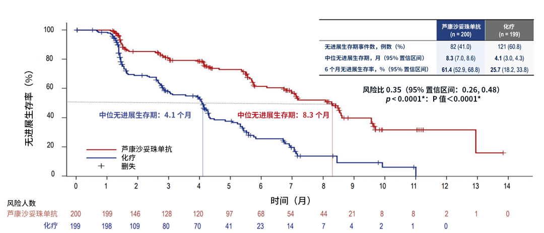 该研究结果显示,芦康沙妥珠单抗的mPFS显著长于医生选择的化疗(ICC),为8.3 vs 4.1个月(HR=0.35,P<0.0001),降低了65%的疾病进展或死亡风险;ORR提升了近一倍,为41.5%vs 24.1%;OS尚不成熟,初步显示芦康沙妥珠抗可较ICC降低了67%的死亡风险(HR=0.33),数据非常漂亮。基于该研究结果,目前芦康沙妥珠单抗治疗HR+/HER2-晚期乳腺癌的适应症已提交上市申请,有望迅速获批,将进一步扩展中国原研Trop-2 ADC的治疗版图。