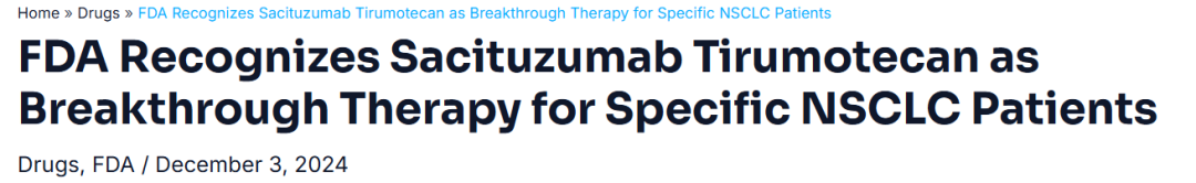 2024年FDA授予芦康沙妥珠单抗突破性疗法认定