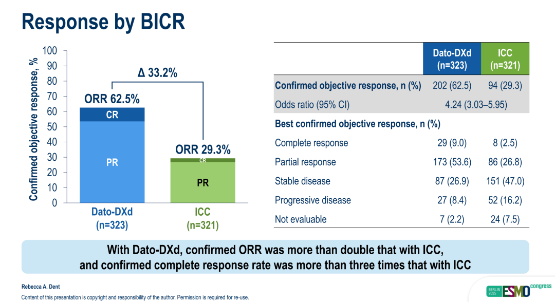 TROPION-Breast02研究BICR评估的缓解状况