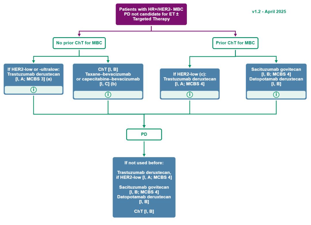 [14]ESMO Metastatic Breast Cancer Living Guidelines,v1.2 April 2025.Available at[2025.12.17]:https://www.esmo.org/living-guidelines/esmo-metastatic-breast-cancer-living-guideline/hr-positive-her2-negative-metastatic-breast-cancer/hr-positive-her2-negative-metastatic-breast-cancer/de-novo-mbc-or-recurrence-12-months-after-the-end-of-adjuvant-et-et-sensitive-naive/sub-diagrams/hr-her2-mbc-pd-not-candidate-for-et-targeted-therapy