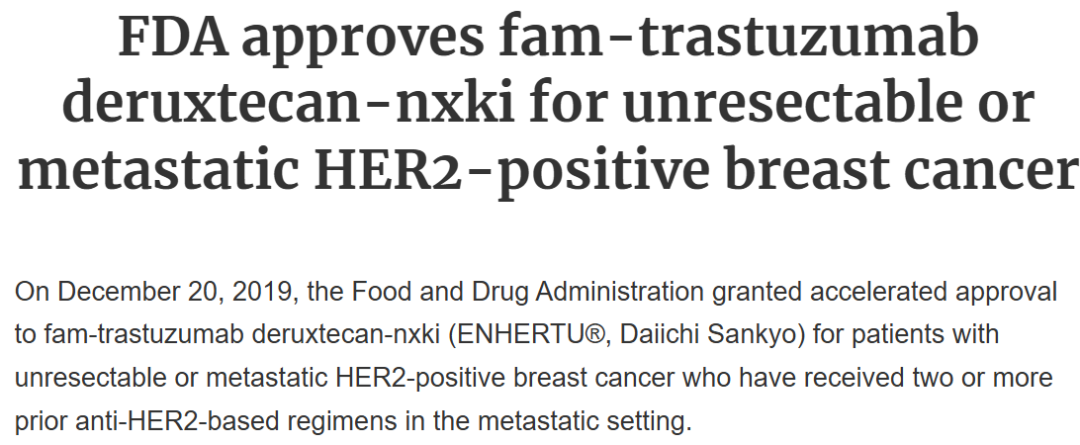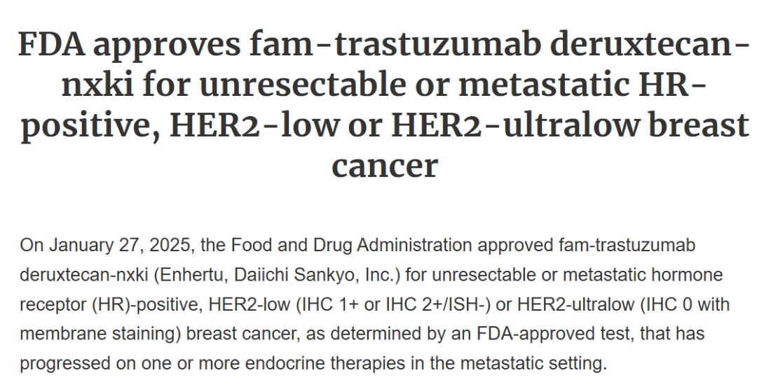 2025年FDA批准T-DXd HR阳性/HER2(超)低表达适应症