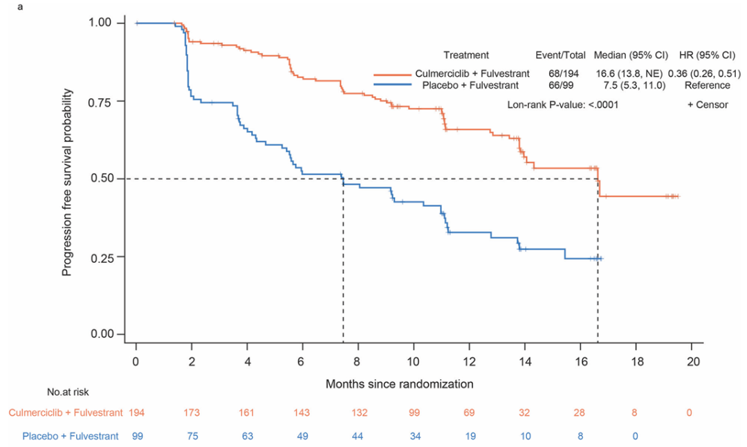 6.Erwei.Song,Yinyong.Yin,Jianli.Zhao,et al.Culmerciclib Plus Fulvestrant as First-Line Treatment for HR+/HER2-Advanced Breast Cancer:A Phase 3 Trial(CULMINATE-2).ESMO 2025:LBA25.