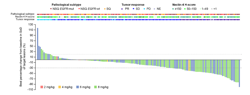 研究结论:尽管未达到预设的疗效终点,但支持Enfortumab vedotin在部分选择的非鳞、NSCLC患者中开展进一步研究。