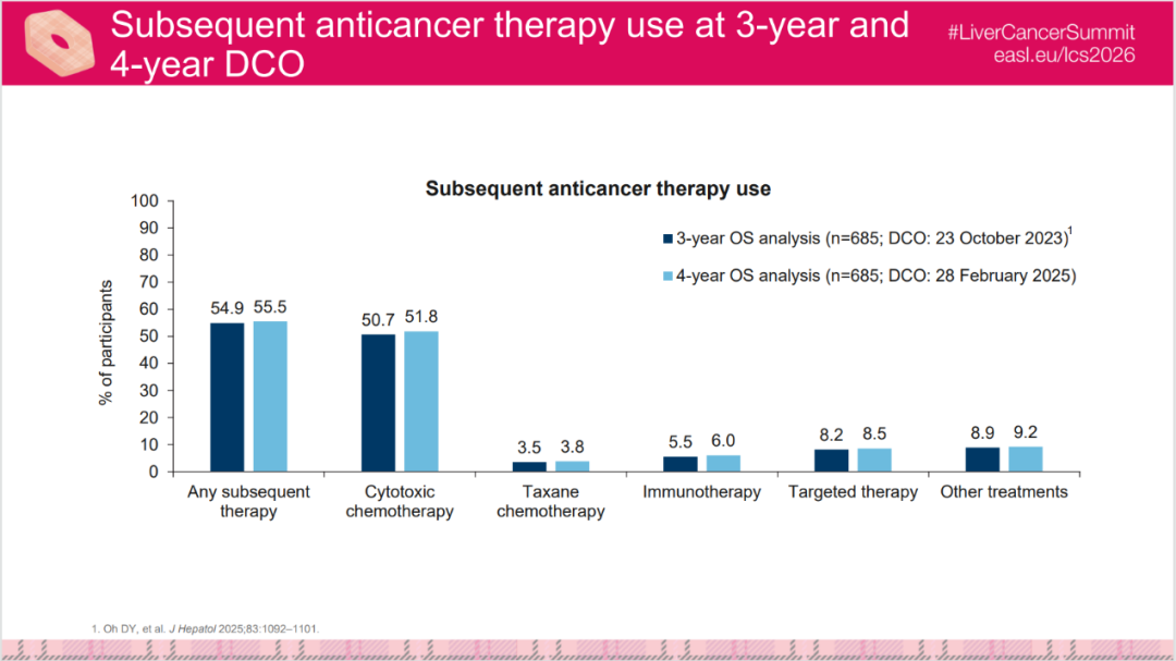 图3.在为期3年和4年的数据截止时间(DCO)观察期内后续抗肿瘤治疗的使用情况