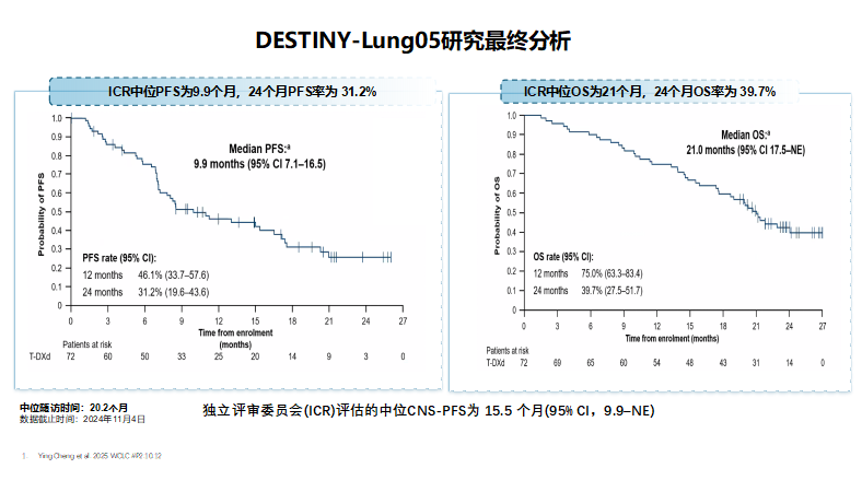 6.Ahn MJ,Tanaka K,Paz-Ares L,et al.Datopotamab deruxtecan versusdocetaxel for previously treated advanced or metastatic non-small cell lungcancer:the randomized,open-label phase III TROPION-Lung01 study.J ClinOncol 2025;43:260–272.7.Sands J,Ahn MJ,Lisberg A,et al.Datopotamab deruxtecan in advanced ormetastatic nonsmall cell lung cancer with actionable genomic alterations:results from the phase II TROPION-Lung05 study.J Clin Oncol 2025;43:1254–1265.8.Ahn MJ,Lisberg A,Goto Y,et al.A pooled analysis of datopotamabderuxtecan in patients with EGFR-mutated NSCLC.J Thorac Oncol 2025;S1556-0864:00761-0.9.Xiuninq le,et al.Osimertinib+datopotamab deruxtecan in patientswith EGFR-mutated advanced NSCLC whose disease progressed on first-line osimertinib:ORCHARD.2025 ELCC 1O.10.Wenfeng F,Lin W,et al.Sacituzumab Tirumotecan in EGFR-TKI-Resistant,EGFR-Mutated Advanced NSCLC[J],New England Journal of Medicine,2025,394(1):13-26.11.H.A Y,X.L,M.L J,N.I,A.I S,P.A J,M.F,T.P,G.L,C.A P,W.J E,S.V L,Z.P,C.P,J.L Z,H.W,G.R,H.Z,J.C,J.P,et al.Phase I Global Study of Iza-Bren(BL-B01D1),an EGFR X HER3 Bispecific Antibody-Drug Conjugate(ADC),in Patients with Metastatic or Unresectable Non-Small Cell Lung Cancer(NSCLC)and Other Solid Tumors[J],Journal of Thoracic Oncology,2025,3612.Shun L,Zhen Z,et al.First-in-human study of SYS6010,a novel EGFR targeting antibody drug conjugate(ADC)for patients with advanced solid tumors.2025 AACR.CT008.13.Italiano A,Besse B,Borghaei H,et al.118MO Trastuzumab deruxtecan(T-DXd)and pembrolizumab in immuno-oncology(IO)-naive HER2-expressing or HER2-mutant non-small cell lung cancer(NSCLC):Interim analysis of a phase Ib study.Immuno-Oncology and Technology 2024;24.14.Benjamin L,Luis P,Chien‐Chung L,Scott M H,Tsung‐Ying Y,Anthony W T,Yanyan L,Yoshitaka Z,Diego C,Enriqueta F,Manuel D,Konstantinos L,Emiliano C,Atsushi H,Edward P,Keisuke M,Xiaoyu J,Rachel C,Michael C,Yasushi G,et al.TROPION-Lung02:Datopotamab Deruxtecan(Dato-Dxd)Plus Pembrolizumab(pembro)with or Without Platinum Chemotherapy(Pt-Ct)As First-Line(1L)Therapy for Advanced Non-Small Cell Lung Cancer(Ansclc).[J],Journal of Clinical Oncology,2025,43(16_suppl):8501-8501.15.Cuppens K,Papadopoulos PK,Nishio M,et al.First-Line Datopotamab Deruxtecan+Durvalumab±Carboplatin in Advanced or Metastatic Non-Small Cell Lung Cancer:Results from TROPION-Lung04(Cohorts 2 and 4).2025 ESMO TAT.Abstract 8O.16.Saiama Waqar,et al.First-line(1L)datopotamab deruxtecan(Dato-DXd)+rilvegostomig in advanced or metastatic non-small cell lung cancer(a/mNSCLC):Results from TROPION-Lung04(cohort 5).2025 ASCO.Abstract 8521.17.Reck M,Patel JD,Gray JE,et al.First-Line Sacituzumab Govitecan Plus Pembrolizumab in Metastatic NSCLC:PD-L1 TPS<50%and≥50%Cohorts of the EVOKE-02 Study.J Thorac Oncol.2025 Oct 29:S1556-0864(25)02890-4.doi:10.1016/j.jtho.2025.10.016.18.Tina C,Laura B,Florian G,Amelia I,Moishe L,Olivier B,Lorenzo L,Thomas E,Romain C,Dong-Wan K,Maria R G C,Mariano P P,Byoung Y S,Giulio M,Jaafar B,Agata A B,Alula R Y,Yun H,Adam D,Gozde K,Lara M,Rakesh K,Italia G,Jonathan S,Patrick M F,et al.Perioperative Durvalumab Plus Chemotherapy Plus New Agents for Resectable Non-Small-cell Lung Cancer:the Platform Phase 2 NeoCOAST-2 Trial[J],Nature Medicine,2025,31(8):2788-2796.19.Marina Chiara Garassino,et al.Normalized Membrane Ratio of TROP2 by Quantitative Continuous Scoring is Predictive of Clinical Outcomes in TROPION-Lung 01.2024 WCLC.PL02.11.