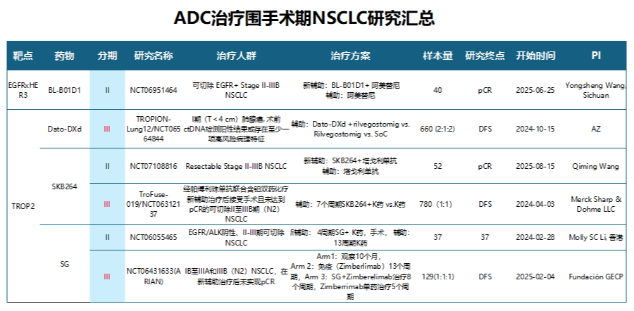 此外。TROPION-Lung12研究等III期研究正在探索ADC药物用于辅助治疗的可行性,旨在降低术后复发风险,改善长期生存。