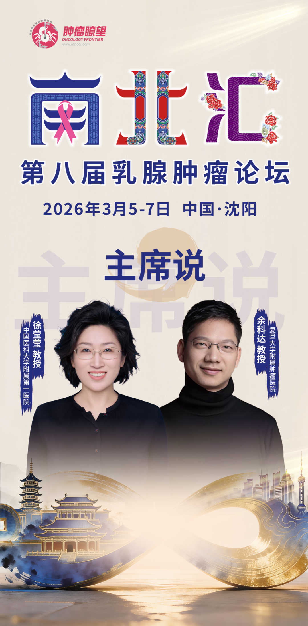 编者按:春回大地,万物竞发。由中国抗癌协会乳腺癌专业委员会和上海市防癌抗癌事业发展基金会共同主办,中国医科大学附属第一医院、复旦大学附属肿瘤医院共同承办,中华医学会肿瘤学分会乳腺肿瘤学组支持的“南北汇:第八届乳腺肿瘤论坛”(第八届“南北汇”)将于2026年3月5日至7日在沈阳召开。在会议即将拉开帷幕之际,肿瘤瞭望有幸邀请到大会执行主席复旦大学附属肿瘤医院余科达教授与中国医科大学附属第一医院徐莹莹教授,就本次论坛的亮点设置、临床热点议题及青年人才培养等话题进行深度分享,以飨读者。