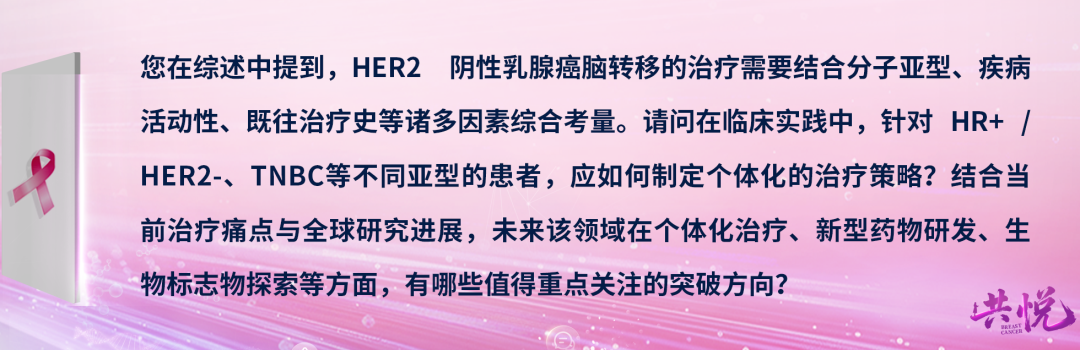 郝春芳教授:在临床实践中,对于HER2阴性乳腺癌脑转移患者,我们必须基于患者的分子亚型、疾病活动性、既往治疗史等核心因素,制定全程个体化的治疗策略,才能最大化患者的治疗获益。