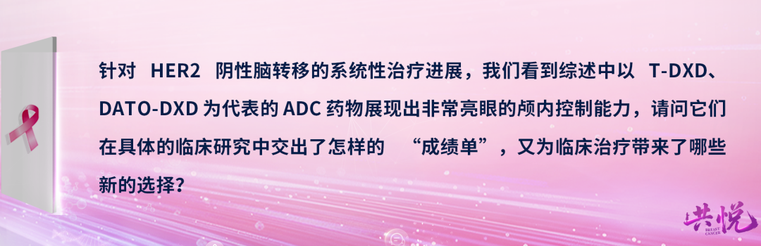 郝春芳教授:ADC药物无疑是近年来实体瘤治疗领域突破最为显著的方向之一,在乳腺癌领域更是实现了跨越式发展,其中,靶向HER2的T-DXd与靶向TROP2的Dato-DXd,均在HER2阴性乳腺癌脑转移治疗中展现出突破性的颅内抗肿瘤活性,深刻改写了现有的治疗格局。