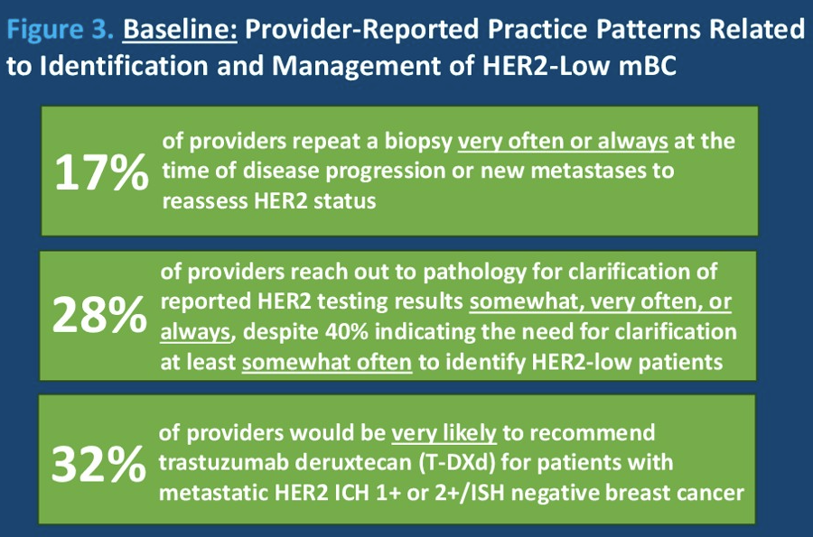 后续针对23名医护人员的调查显示结果显示,在识别HER2低表达乳腺癌、与病理科医生的沟通、回顾既往病理报告以及为重新评估HER2状态而进行再活检的频率方面均有改善。