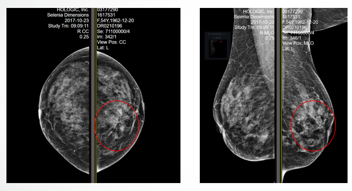 患者,女性,54岁,2017年10月因“发现左乳肿块2周”就诊。