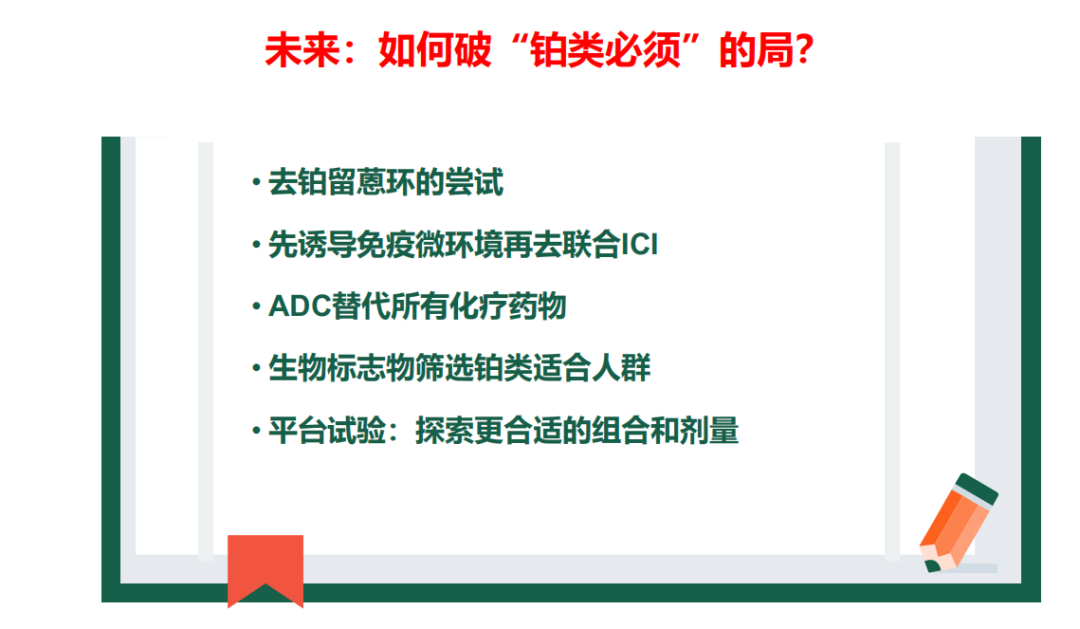 临床实践应用中,患者非常在意个体水平转化为生存获益的比例和铂类毒副反应的平衡。所以,我们应从患者的角度考虑其得到的获益是否能够转化成生存,并且思考我们又应该如何平衡其治疗的不良反应?此外,KEYNOTE-522研究给我们留下的相关问题也应进行考虑:如在给患者进行新辅助化疗时,化疗是否都需要像KEYNOTE-522研究那样应用四种化疗药物(特别是对于免疫治疗极敏感的人群)?蒽环是否为必须使用的药物(心脏毒性、继发白血病风险患者是否可避免)?铂类是否必须(血液学毒性、神经毒性是否所有患者都需要承受)?帕博利珠单抗是否一定要治疗满一年(达到pCR的患者,能否“减负”)?