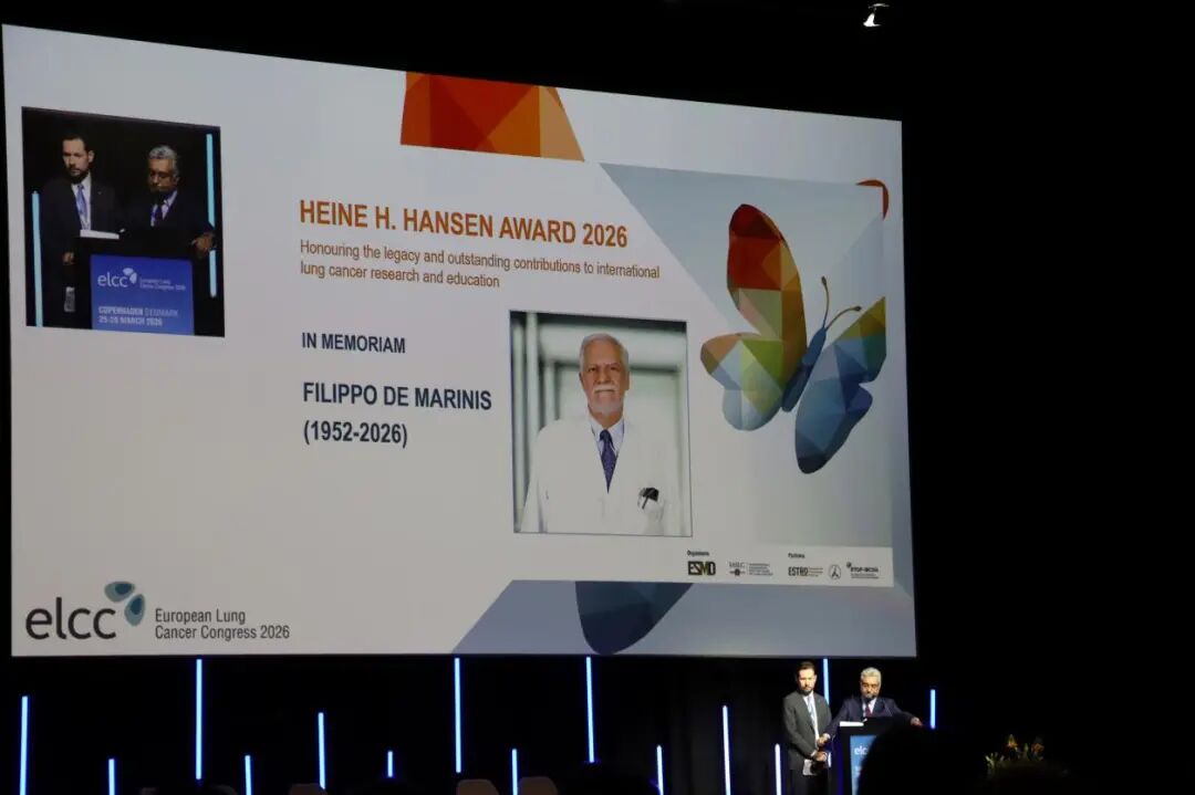 IASLC与ESMO于2015年联合设立的Heine H.Hansen Award,旨在表彰在肺癌研究、教育及临床实践中做出卓越贡献的学者。本届奖项授予了近期逝世的米兰欧洲肿瘤研究所(IEO)胸部肿瘤科主任Filippo de Marinis教授。