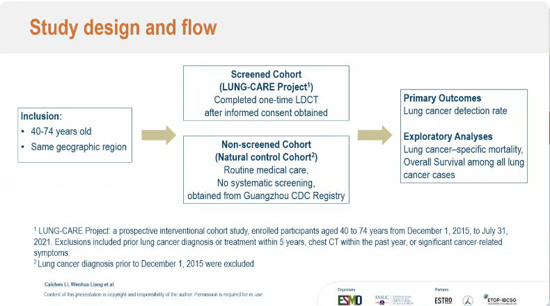 3.Li Caichen,et al.The impact of one-time low-dose CT screening on lung cancer mortality in a non-risk-based population:a prospective non-randomized controlled study.2026 ELCC,LBA5.