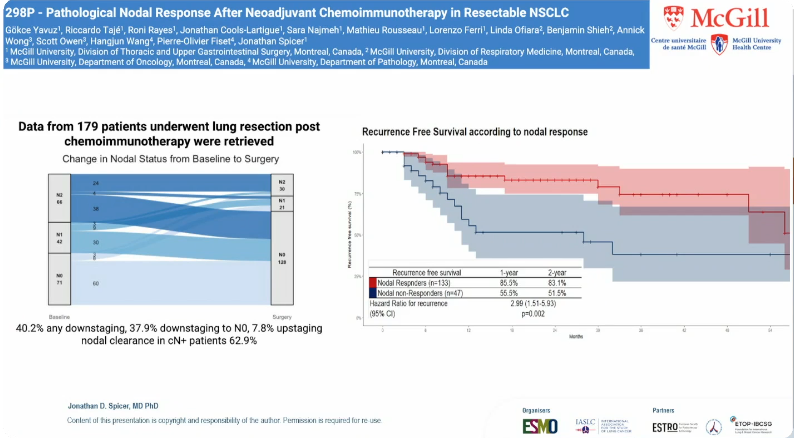 Jonathan Spicer教授指出,这一研究进一步证实淋巴结反应不仅可作为新辅助治疗疗效的关键评价指标,其预测因素也为术前识别高危患者、优化手术策略提供了重要参考。