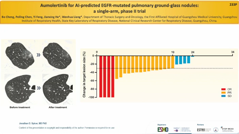 此外,Jonathan Spicer教授还提及一项基于人工智能的EGFR突变预测模型[11]。该研究利用CT影像深度学习模型,在术前无创预测肺结节是否存在EGFR突变,为“像治疗肺炎一样治疗早期肺癌”提供了前瞻性设想——未来或许可跳过有创活检,直接对高概率EGFR突变患者启动新一代TKI治疗。